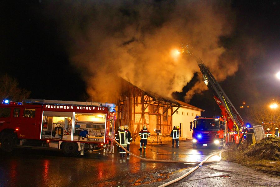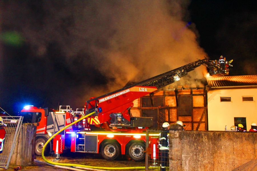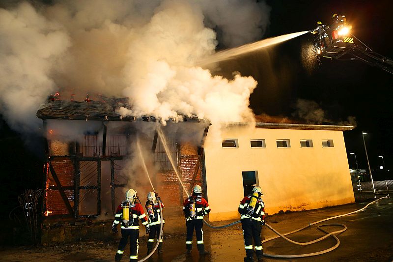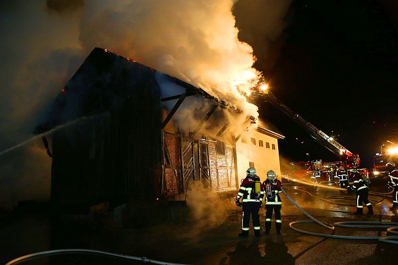 Um 19:00h wurden die oben genannten Einheiten zu einem Gebäudebrand nach Ruschberg alarmiert. Bereits auf der Anfahrt konnte man Feuerschein und Funkenflug aus der Ferne erkennen. Vorort angekommen stand das alte Bahnhofsgebäude, heute als Lager genutzt, in Vollbrand. Sofort wurde der Löschangriff aufgebaut und mit der Brandbekämpfung begonnen. Die US Standortfeuerwehr Baumholder unterstützte uns mit ihren verfügbaren Mitteln. Das direkt angrenzenden Gebäude wurde mittels Riegelstellung erfolgreich gehalten, und ein Ausbreiten des Feuers konnte somit verhindert werden. Gegen 01:00h war der Einsatz beendet.